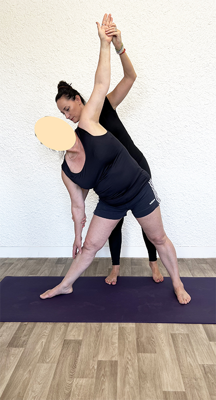 L’effectif volontairement réduit des cours collectifs et des cours privés (maximum 8 personnes) permet de porter une attention particulière aux capacités de chaque personne afin d’adapter les postures et les propositions à chacun.